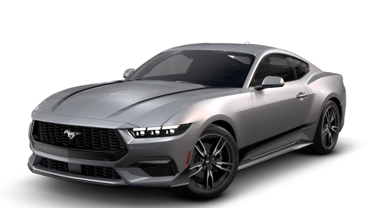 2025 ECOBOOST COUPE 4-PASSENGER SPORTS CAR ICONIC SILVER METALLIC 2.3L ECOBOOST 10-SPEED AUTOMATIC TRANS INTERIOR: BLACK ONYX CLOTH SEATS, EQUIPMENT GROUP 100A, 3.15 RATIO LIMITED SLIP AXLE, 255/40R19 W-RATED TIRE, WHEEL & STRIPE PACKAGE, 19 MCHD AL W/TRNSHD DK-PTD PK, HOOD STRIPE, SIDE STRIPE, BLACK STEP OPACITY FADE, SPOILER DELETE